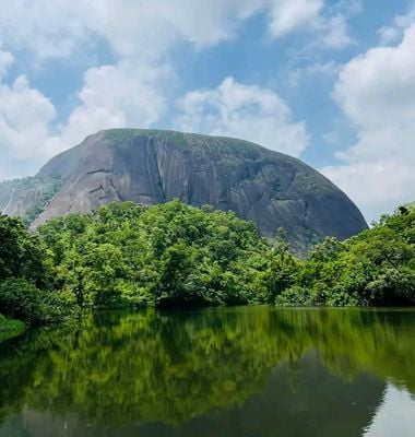 La formazione granitica raggiunge un'altezza di 936 metri sul livello del mare, costituendo un elemento naturale dominante nel paesaggio di Abuja.