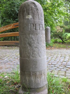 La tenuta Plekenpol presenta due pilastri in pietra dura al suo ingresso, decorati con motivi fogliari e recanti una iscrizione nominativa.
