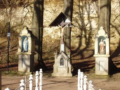 Dietro le statue si trova un sito geologico chiamato Groeve bij de Drie Beeldjes, che aggiunge valore naturalistico al complesso religioso.