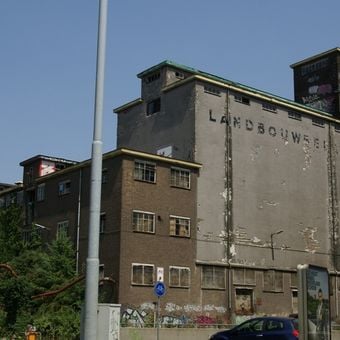 Il complesso Landbouwbelang si estende per 11,500 metri quadrati tra il porto interno Bassin e il fiume Mosa a Maastricht, con elementi di architettura industriale.