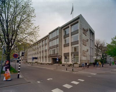 L'edificio SHV sorge vicino al Rijnkade, mostrando gli elementi caratteristici dell'architettura commerciale olandese del dopoguerra con le sue linee strutturate.