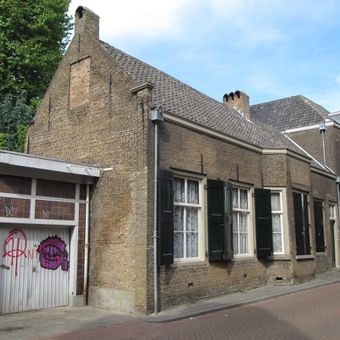 Pand met lijstgevel waarin geprofileerde, laat-gotische poort, die toegang geeft tot het hof