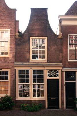 Pand met tot puntgevel gewijzigde trapgevel met schuiframen