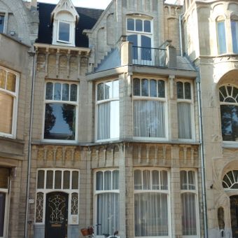PAND in neo-renaissance trant. Parterre bekleed met hardsteen. Rechts een driezijdig uitgebouwde erker over twee verdiepingen, waarboven houten loggia, versierd met rijk snijwerk. Topgevel