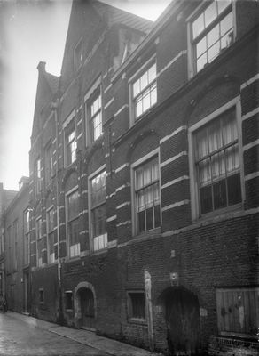 Woonhuisjes aan de noordzijde van de steeg tussen Voorstraat en Hof, tegenover de Augustijnenkerk