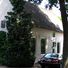 Lage woning onder rieten zadeldak aan de korte zijden afgewolfd. Kleine roeden, schuiframen, muurankers