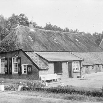 Boerderij onder met pannen en riet gedekt afgewolfd zadeldak