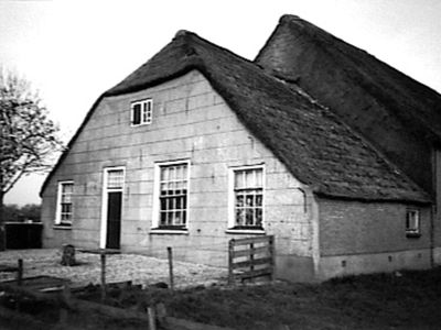 Boerderij waarvan woonhuis en bedrijfsgedeelte onder een rieten zadeldak