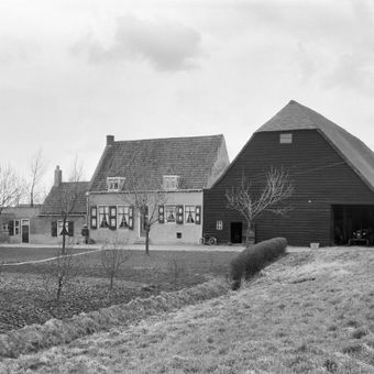 Boerderij, bestaande uit een gepleisterd woonhuis onder pannen zadeldak, evenwijdig aan de dijk.