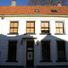 Huis met gepleisterde lijstgevel met in de verdieping schuiframen en dakvenster met balustrade