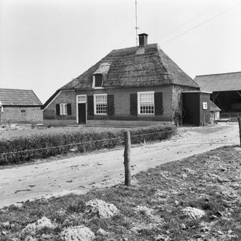 Boerderijtje onder een met riet en pannen gedekt afgewolfd zadeldak
