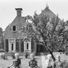 Pand tegen brede topgevel onder zadeldak met topschoorsteen