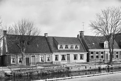 Twee woningen onder dwars zadeldak tussen topgevels, house in Menameradiel, Netherlands