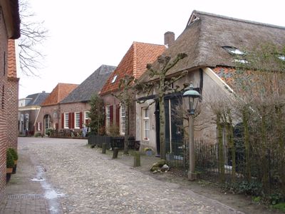 Hoeve onder rieten dak met mooie houten deeldeur