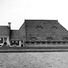Eenvoudig pand met omgaande goot op klossen onder zadeldak tegen topgevel met twee aanbouwen