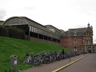 Station Den Haag Hollands Spoor: Overkapping Leidse zijde met keermuur