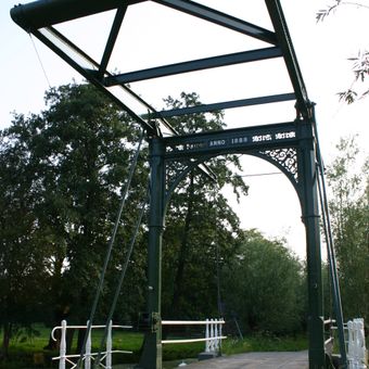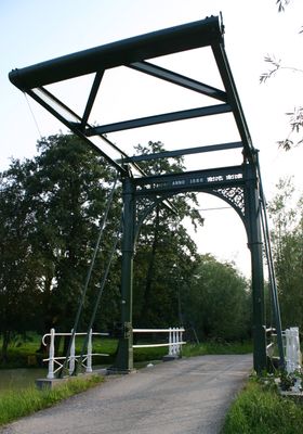 Enkele ijzeren ophaalbrug van het Hollandse type met een bruggenhoofd van ijsselsteen met hardstenen blokken en een bruggenhoofd van beton