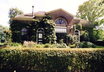 De Geldersche Toren: oranjerie in eclectische trant uit 1880 met door het Neo-classicisme beinvloede hoofdvorm