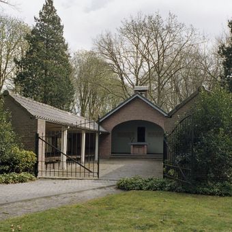 Patronaatsgebouw aan De Schans, baksteen met knipvoeg opgetrokken eenlaags gebouw onder zadeldak