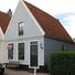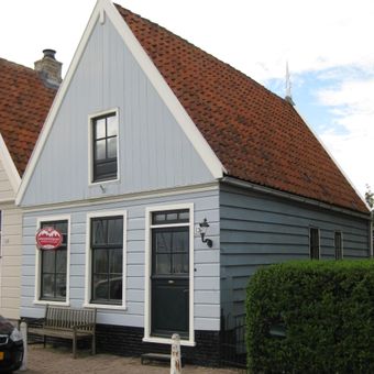 Houten huis, gepotdekselde zijwanden en puntvormig voorschot. Goede pui en puilijst
