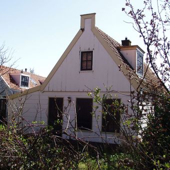 Houten huis met aangebouwde zijbeuk aan de rechterzijde en puntvormig voorschot
