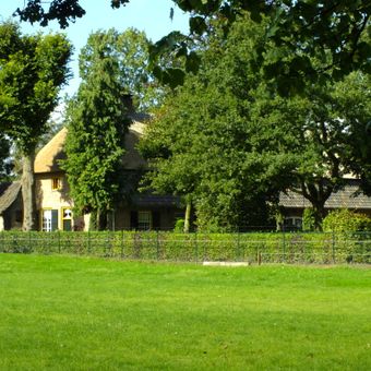 Langgevelboerderij met dwarsdeel en twee schuren