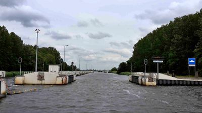 La chiusa di Terherne include porte di controllo che consentono alle imbarcazioni di navigare tra diversi livelli d'acqua nel sistema idrico frisone.