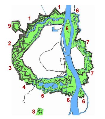 La fortificazione include elementi conservati come il bastione Waldeck, la controguardia Du Moulin e le lunette Zeeland, Holland e Gelderland.
