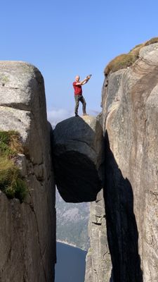 I praticanti del BASE jumping considerano Kjeragbolten una location principale, con oltre 60.000 salti registrati dalle scogliere adiacenti dal 1994.