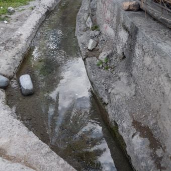 Il sistema mantiene 3,000 canali funzionanti che forniscono acqua a fattorie e abitazioni attraverso una rete in territorio montuoso.