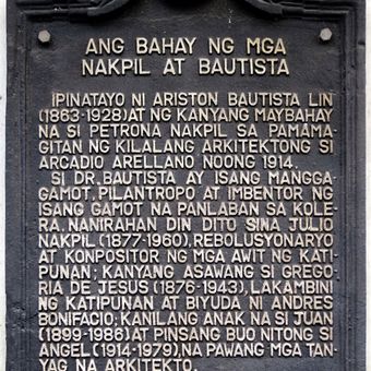 The House of the Nakpils and Bautistas historical marker, NHI historical marker for the Nakpil–Bautista House
