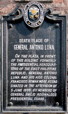 Death Place of General Antonio Luna historical marker, NHC historical marker for the site where Antonio Luna was assassinated