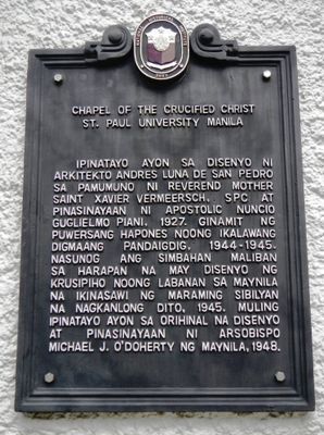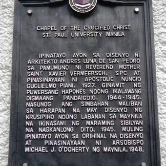 Chapel of the Crucified Christ historical marker, NHCP historical marker for the Chapel of the Crucified Christ at St. Paul University Manila