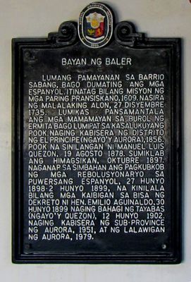 Town of Baler historical marker, NHCP historical marker for Baler