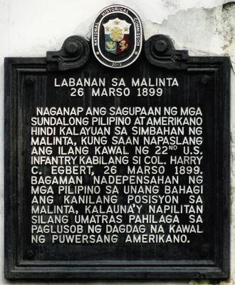 Battle of Malinta historical marker, NHCP historical marker for the Battle of Malinta