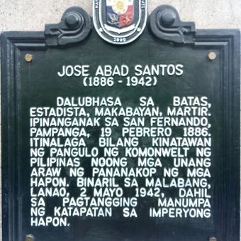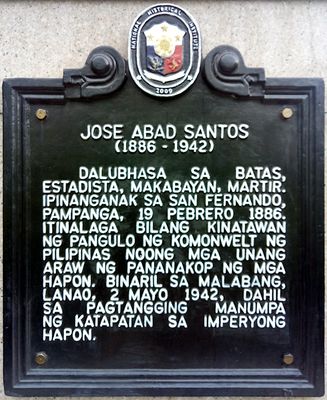 Jose Abad Santos historical marker, 2009 NHI historical marker for José Abad Santos