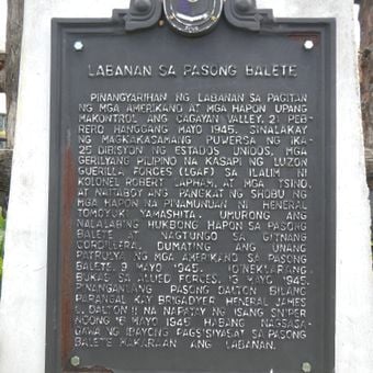 Battle of Balete Pass historical marker, NHCP historical marker for the Battle of Balete Pass, Nueva Vizcaya