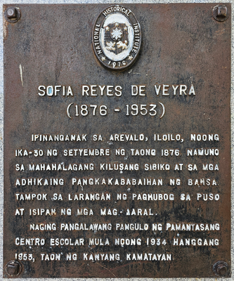 Sofia Reyes de Veyra historical marker, NHI historical marker for Sofia de Veyra in Iloilo City