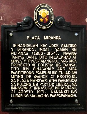 Plaza Miranda historical marker, NHCP historical marker for Plaza Miranda