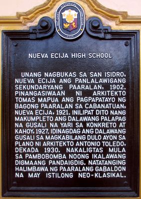 Nueva Ecija High School historical marker, NHCP historical marker for the Nueva Ecija High School