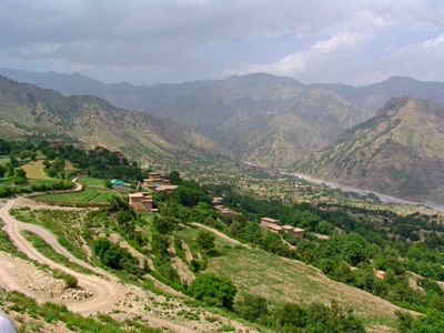 Il distretto di Kurram si estende attraverso valli e colline lungo il fiume Kurram, creando un confine naturale tra Pakistan e Afghanistan.