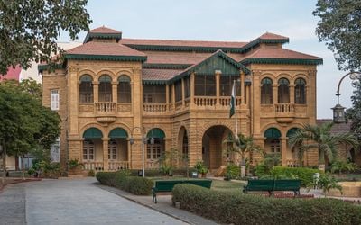 La Casa Quaid-e-Azam presenta un'architettura in arenaria con diverse sale espositive che mostrano effetti personali, documenti e fotografie di Muhammad Ali Jinnah.