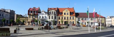 La città si estende su 4,32 chilometri quadrati nella regione della Cuiavia-Pomerania, con una densità di popolazione di circa mille abitanti per chilometro quadrato.