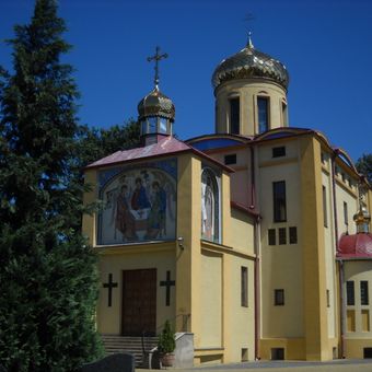 La chiesa dei Santi Cirillo e Metodio presenta elementi architettonici ortodossi orientali tradizionali con linee verticali e multiple cupole costruite interamente in mattoni.
