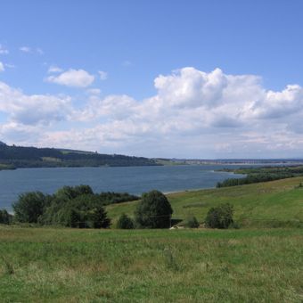Due strutture medievali, il castello di Niedzica e le rovine del castello di Czorsztyn, si ergono sulle sponde opposte del lago.