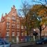 L'edificio di tre piani in mattoni rossi presenta un'architettura storicista con ali simmetriche e numerose grandi finestre sulla facciata principale.