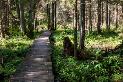 Passerelle in legno guidano i visitatori attraverso le zone paludose, richiedendo calzature robuste per esplorare i sentieri naturali.