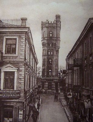 Wieża ciśnień na placu Wolności w Lublinie, Torre dell'acqua neogotica in Piazza Wolności, Lublin, Polonia.