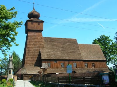 St. James church in Wisła Mała, historic wooden church in Wisła Mała, Silesian Voivodeship, Poland