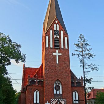 Costruita nel 1905 come chiesa protestante, l'edificio è stato convertito all'uso cattolico nel 1945 dopo la Seconda Guerra Mondiale.